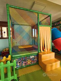Sono presenti tappeto elastico, area baby 0-3 e una struttura playground su due piani.