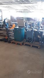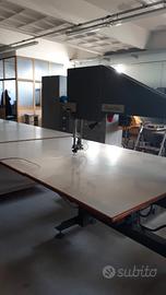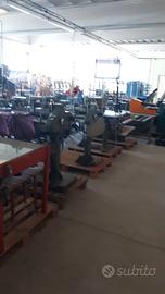 Macchine per cucire: (lineari, taglicuci, passaelastico, orlatrici, punto invisibile, tagliacollaretto ad un braccio e due bracci attaccabottoni e occhiellatrici a pressione, sega a nastro completa di tavolo da taglio. MARCHE: RIMOLDI-PFAFF-NECCHI-ADLER-DURKOPP-REFREY-ETC.