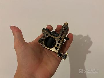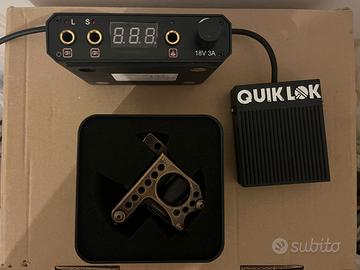 macchinetta a bobina per tattoo sunskin, con pedale e alimentatore. READY PLAIN BRASS CLASSIC ALIMENTATORE 3AMP 18V PEDALE IN PLASTICA