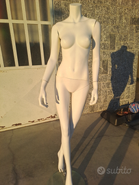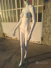 Manichino da donna stilizzato con un corpo scolpito. Ideale per esposizioni. - Materiale: plastica - Colore: bianco - Base rotonda in vetro