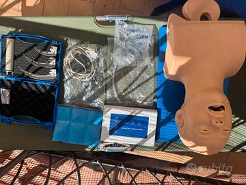 Vendo manichino per rcp con laringoscopio con accessori, il manichino ha i sensori per seguire la manovra e per eseguire l'operazione alla perfezione. Borsa Centralina sensori Laringoscopio Kit intubazione Siringa per gonfiare Tappetino (nuovo) Usato massimo 8 volte, oggetto come nuovo.