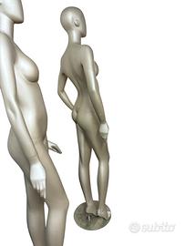 Vendo manichino femminile a figura intera in plastica resistente, finitura argento metallizzato. Un modello professionale, ideale per vetrine, showroom o per chi vende abbigliamento online e cerca un supporto pratico e leggero per le foto.