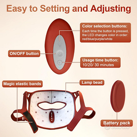 Tecnologia LED Avanzata? La maschera led viso professionale a offre quattro modalità di luce tra cui scegliere: la luce rossa (630 nm) migliora le linee sottili e l'acne, riparando in profondità; la luce blu (470 nm) regola la secrezione sebacea e ripara la pelle sensibile; la luce viola (410 nm) ripara le cicatrici da acne; e la luce bianca (465 nm) rassoda la pelle, adattandosi a diversi tipi di pelle.