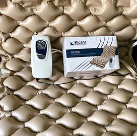 Materasso antidecubito con compressore per pazienti tra 50 kg a 110 kg. Conforme con normativa CE, Kit di riparazione e foratura inclusi. Misure: cm 200 x 88 x 7H + 90 cm per rimbocco sotto il materasso.