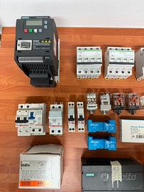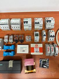 Interruttori magnetotermici, relé, plc, trasformatore, temporizzatore, differenziale, orologio astronomico, spine . Per info contattatami.