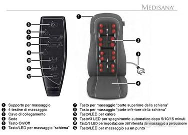 Cedo per inutilizzo MEDISANA sedile / copertura Massaggiante modello MC 818, come nuovo, usato quasi per niente e perfettamente funzionante comprensivo di telecomando per le varie regolazioni.