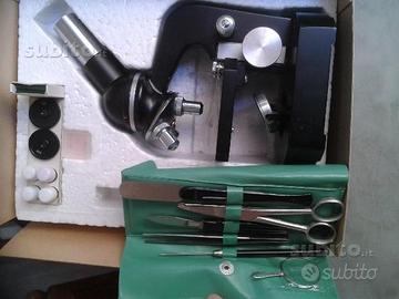 Microscopio biologico 10x-20x usato ottimo per tutte le età, uso scolastico-didattico. Confezionato in scatola originale, compresi vari accessori: forbici, pinzette, bisturi, lente d'ingrandimento liquidi colorati, vetrini grandi e piccoli per fissaggio. Compresa confezione di vetrini con parti di insetti e vegetali da poter osservare e studiare. Struttura solida in metallo,dimensioni ridotte per una perfetta trasportabilità.lo specchietto condensatore di luce miglio la visione dei vetrini. Ingrandimenti zoom da 10x a 20x.