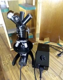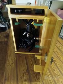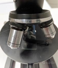 Microscopio ottico dei F.lli Koristka Milano 1920 circa in ottone verniciato e acciaio cromato, con torretta a quattro oculari (4X,6X,8X e 14X) e tre obiettivi (12X,45X e 100X) con illuminatore elettrico e scatola originale in legno. Ottimo stato perfettamente funzionante. Misura circa 45x25x22 cm ,peso 8kg!! Disponibili altre foto + dettagliate. No offerte assurde o perditempo, per veri interessati e intenditori. Offro e chiedo la massima serietà e professionalità. Grazie .