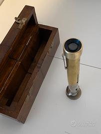 Microscopio portatile da tasca modello stilo ! Bellissimo in ottone , funzionante ! Con la sua scatola in legno vintage ! Oggetto molto raro e vecchio!