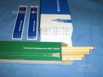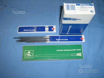 mine Staedtler Mars 200 confezione con 12 astucci contenenti ciascuno 12 mine F totale n°144 mine piu' due astucci contenenti in tutto n°20 mine 2H, piu' n°5 matite - gomma Faber Castell tipo 7058 adatte per fare delle cancellature di precisione, vendo tutto assieme in blocco a e.95, ritiro e trasporto a carico del compratore oppure posso spedire con pacco postale in contrassegno costo 10 euro