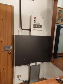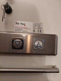 Mini Elevatore "3D TEC SL100" Corsa Massima: 1 m Portata: 210 kg Dimensioni pedana: L. 900 mm; P. 750 mm Ingombro esterno: L. 1170 mm; P. 930 mm; H. 1350 mm Gruppo di manovra: Oleodinamico Manovra: Uomo presente Alimentazione: Batterie 24 V - 4 Ah Alimentazione: 230 V - 40 W Competo di cancelletto in vetro