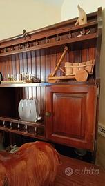 Vendo mobile bar completo in vero legno massello, lavorato artigianalmente, comprensivo di due sgabelli alti. Perfetto per taverna, soggiorno o locale in stile rustico. ? Ritiro e trasporto a carico dell'acquirente.