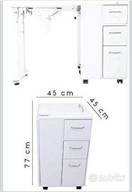 mobiletto professionale per manicure dotato di ruote e poggia mano ergonomico 3 cassetti aspiratore elettrico richiudibile salvaspazio