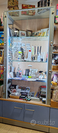 Vendo 25 mt di scaffalature varie con mobiletti chiusi e a giorno e 2 banconi per la vendita, in condizioni perfette in legno con rifiniture in metallo