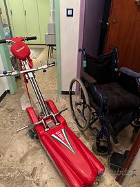 Montascale a cingoli per carrozzine. Permette di legarvi saldamente la carrozzina e con la persona seduta sopra scendere e salire qualsiasi tipo di scala, batteria cambiata recentemente e in perfette condizioni.
