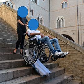 Montascale a cingoli usato. Utilizzato 3 mesi. Utilissimo per salire e scendere disabili in carrozzina. Dotato di cinture di sicurezza e Alimentazione caricabatterie: 220 V . Massimo peso trasportabile: 130 kg.
