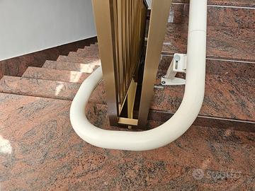 Vendiamo montascale Thyssenkrupp modello FLOW2A. Usato pochissime volte da persona anziana. Completo di due punti di ricarica (valle e monte), circa 11 metri di binario (2 pezzi inizio/fine, 3 pezzi diritti da 110 cm, 2 curve da 150 cm e 1 pezzo lungo dritto da 160 cm) e 1 telecomando. Tutto perfettamente funzionante (potete vederlo in funzione prima di smontarlo). Al momento serve un secondo piano (3 rampe di scale). Contattateci per info. Abbiamo messo il prtezzo che equvale ad 1/3 del valore a nuovo!