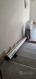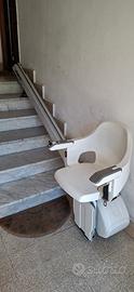 Montascale per disabili.Perfetto funzionamento. 7,5 ml. di binari. Istallato solo un tratto di 2,5 ml. 2 batterie 12V 7Ah. 2 telecomandi. Smontaggio, montaggio e trasporto a carico del compratore