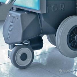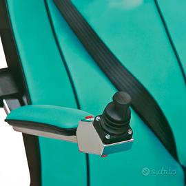 RICONDIZIONATO COME NUOVO - PREZZO IN OFFERTA SPECIALE! Il montascale Scoiattolo E (elettronico) è una comoda poltrona con motorizzazione elettrica realizzata per consentire alle persone con difficoltà motorie, di superare le barriere architettoniche in modo semplice e veloce. Una seconda motorizzazione azionata tramite joystick permette all'utilizzatore di muoversi in modo autonomo all'interno della propria abitazione. Caratterizzato da un sistema di movimentazione unico nel suo genere, il montascale Scoiattolo E (elettronico) non richiede alcuna applicazione fissa a parete e necessita semplicemente della presenza di un accompagnatore. Confortevole per il paziente, in quanto il movimento eseguito dalle tre ruote evita sobbalzi e permette un uso fluido del mezzo. L'accompagnatore deve semplicemente mantenere le prese ed impartire i comandi di salita e discesa tramite gli appositi pulsanti. Grazie al sistema di movimentazione realizzato tramite un triangolo di ruote, rende possibile il superamento di qualsiasi tipologia di scala, sia essa diritta, a chiocciola o con gradini di forma trapezoidale. Di semplice utilizzo, affidabile e versatile, il montascale Scoiattolo E (elettronico) diventerà il vostro alleato nel superamento di qualsiasi tipo di barriera architettonica. La seduta è corredata con doppi braccioli alzabili che facilitano il trasferimento da e per il montascale, il poggiatesta e poggiapiedi regolabili che garantiscono una confortevole postura del trasportato.