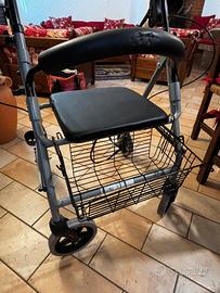 Oggetto praticamente nuovo, mai utilizzato. Dimensione seduta: 38×34 cm - Imbottita 4 ruote di Ø 20 cm in EVA. Ruote frontali piroettanti con forca completa di catarifrangente e ruote posteriori fisse. Dotato di freni a doppia funzione sulle ruote posteriori. Impugnature anatomiche regolabili in altezza per il massimo comfort, complete di catarifrangente. Facilmente pieghevole per essere riposto e trasportato. Schienale imbottito in EVA, seduta imbottita, rivestita di PVC. Fornito con cestino porta oggetti.