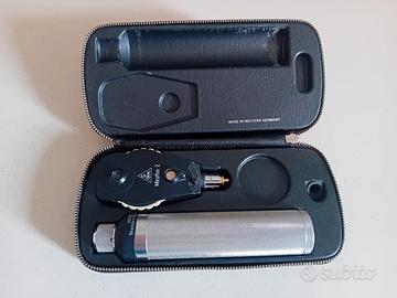 Vendo oftalmoscopio professionale HEINE miroflex 2, completo di custodia rigida originale e manico con impugnatura zigrinata in metallo.