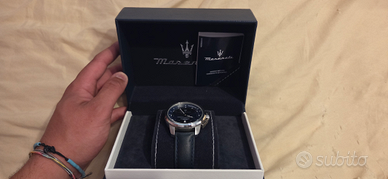 Orologio Maserati con cinturino in pelle blu, cassa in acciaio, nuovo usato una volta, e poi mai più usato