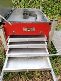 Per cessata attività agonistica vendo paniera gara Anni 2000, completamente in alluminio, robusto e leggero, facilmente trasportabile e con ingombro, scomparti ottimizzati ideali x agonista e/o pesca carpodromo, fiume ecc. *4 +2 piedi retrattili regolabili in altezza e con pedana di appoggio adattabile *2 capienti cassetti sotto seduta, con apertura indipendente e chiusura frontale *4 cassetti scorrevoli lateralmente, agevoli e ambidestri dx o sn e con pannello nero di chiusura *1 cassetto capiente e scorrevole alla base, apertura a dx e con pannello nero di chiusura *tracolla x trasporto, supporto ruba , * telaio già predisposto volendo per altri innesti supporti di servizio * Piccola usura su angolo seduta imbottita *la pedana può essere agevolmente e velocemente smontata x usare solo la seduta con attrezzatura di servizio interna Vendita diretta o spedizione a carico acquirente Contatti solo x e.mail