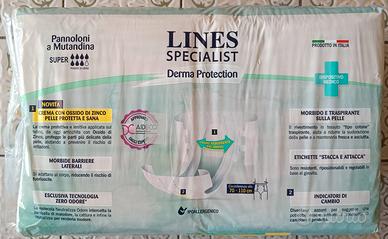Pannoloni a mutandina Lines Specialist Derma Protection Taglia M Assorbenza Super (7/8) Pacco da 30 Singolo pacco 9 Euro 16 pacchi in blocco 120 Euro Consegna a mano Lido di Ostia (Roma)