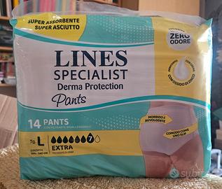 Pannoloni Lines Derma Protection Pants tagli L arricchiti con crema con ossido di zinco per perdite di urina extra (7) Disponibili in tutto 8 pacchi da 14 pezzi l'uno 8 euro a pacco singolo Oppure 8 pacchi a 60 euro
