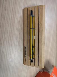 La Parafernalia Revolution, un'icona del design italiano concepita nel 1978 da Sergio Carpani. Ecco i dettagli principali di questo strumento di scrittura: Design e Ispirazione: È stata progettata come oggetto commemorativo per la costruzione del Centre Pompidou (Beaubourg) di Parigi, di cui richiama la struttura tubolare a vista. Costruzione: La penna è interamente montata a mano ed è composta da ben 31 pezzi metallici. La struttura esterna è solitamente realizzata in alluminio anodizzato. Versioni: È disponibile sia come penna a sfera (sfera) che come portamine (solitamente con mine da 0,5 mm o 0,7 mm). Caratteristiche: Il meccanismo di attivazione è a spinta, simile a quello delle auto da corsa più complesse, enfatizzando l'estetica industriale e tecnica. La Revolution è considerata un simbolo del Made in Italy ed è esposta in vari musei di design in tutto il mondo grazie alla sua estetica estrema e innovativa.