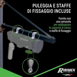 Ribimex Paranco Elettrico Telecomandato da 400/800 Kg con Puleggia e Fune in Acciaio Intrecciato, Motore Monofase e Comando Wireless - PE400/800T Usato solo 1 volta, rimesso nella sua scatola originale con tutti gli accessori