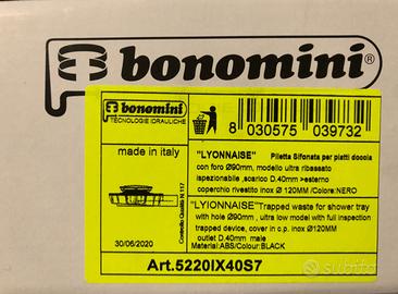 Piletta scarico ribassata Bonomini Lyonnaise 5220IX40S7 per piatti doccia extraslim (ultrasottili) con coperchio acciaio inox. Ispezionabile e compatibile con tutti i piatti doccia con foro di scarico ø 90 mm.