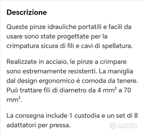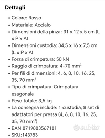 Pinza Crimpatrice idraulica nuova per errato acquisto