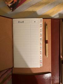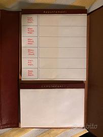 Agenda vintage in pelle marrone. Completa di planner settimanale, blocco per appunti, rubrica e penna. Chiusura con cinturino in pelle e serratura a scatto in ottone.