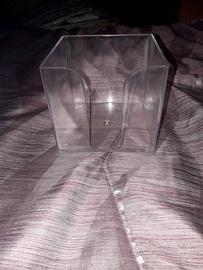 Vendo per errore acquisto in Aprile 2021 questo cubo porta blocco biglietti in plastica resistente, doppio spessore, utilizzato solo una volta, in ottime condizioni, altezza di cm.11,lunghezza di cm 10,utile per biglietti di misura 9 x 9 cm,anche per biglietti più piccoli di misura indicata.colore bianco trasparente.