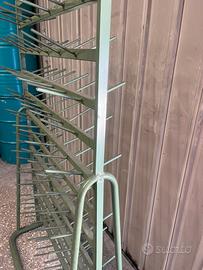 Porta filato originale di vecchia fabbrica in ferro di colore verde utilizzabile anche come porta bottiglie di vetro per lavaggio H 164cm Larghezza 97cm Profondità 48cm