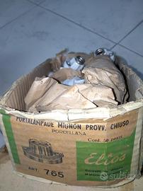 PORTALAMPADA vintage "ELIOS" art. 765, per lampadine mignon E14, provv. chiuso, contatti in ottone; materiale porcellana, colore bianco