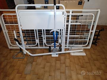 letto elettrico funzionante completo di sponde laterali e trapezio , deambulatore ascellare, portabombola ossigeno e rialzo wc con maniglie (no foto). Si cedono singolarmente per cessato inutilizzo.