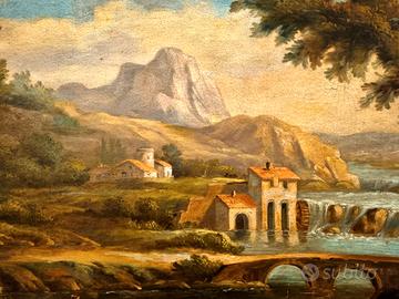 Quadro di paesaggio fiammingo olio su tela 77x103 più cornice pregiata. Riproduzione eseguita da un pittore certificato. Ottimo stato.