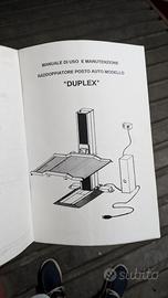 Vendo sdoppiatore posto auto modello Duplex elettroidraulico, con portata fino a 2000 kg, con relativo manuale che contiene le istruzioni di montaggio, installazione e uso. Perfettamente funzionante e ben tenuto, consigliata la revisione prima dell'uso.