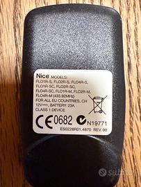Radiocomando Nice FLO2R-S con 2 pulsanti. - Disegno compatto ed ergonomico. - Indicatore LED azzurro. - Portachiavi integrato