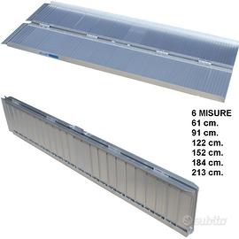 Questa rampa per disabili o anziani non autosufficienti è realizzata in alluminio è pieghevole e si richiude nel senso longitudinale assumendo dimensioni relativamente contenute e grazie alla comoda maniglia diventa facilmente portatile.