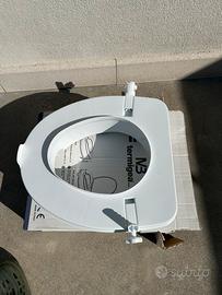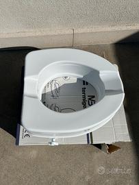 Vendo per inutilizzo rialzo per water della Termigea BA12. Il modello ha un'altezza di 10 cm, una portata fino a 150kg e ha delle staffe laterali per il fissaggio al wc. Realizzato in polipropilene resistente, con seduta ergonomica che facilita l'uso e tagli anteriori/posteriori per una migliore igiene, ideale per offrire maggiore comfort e facilitare l'autonomia di anziani o persone con difficoltà motorie durante l'uso del bagno. L'ausilio è in ottime condizioni, completo della sua scatola originale e pronto all'uso. Per qualsiasi informazione non esitate a contattarmi!