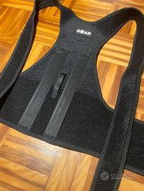 Correttore posturale della marca Roar. È progettato per aiutare a raddrizzare la schiena e le spalle. È un busto posturale traspirante e regolabile, adatto sia per uomo che per donna. Il suo scopo è quello di fornire un supporto passivo per mantenere una postura più eretta.