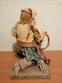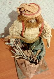 Figura in cartapesta, su una base di legno di cm.2, raffigurante Babbo Natale-Santa Claus. Il volto in ceramica. Altezza cm 31, larghezza cm. 18. peso kg. 1.200. Periodo risalente agli anni '90 del secolo scorso. In buone condizioni, mancante parte di fogliame sulla base del manufatto.
