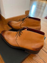 Stivaletto in pelle di vitello realizzato in Toscana Marca: Fratelli Borgioli Completamente colorato a mano con patina Tiziano Tan Fodera in vitello Suola Dainite (British Made) Misura: 43
