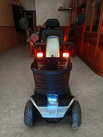 Scooter elettrico per anziani e disabili Maxi Reale Plus in perfette condizioni. Colore grigio e sedile in pelle reclinabile e girevole. Regalo capottina con struttura in metallo e telo trasparente. Regalo inoltre altre quattro ruote usate.