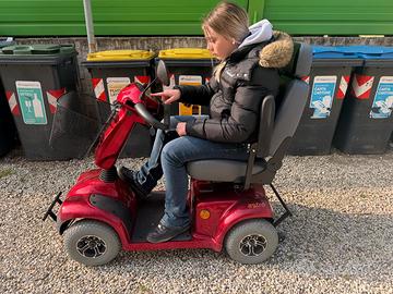 Scooter elettrico per mobilità anziani e disabili, utile per muoversi in sicurezza,sia in ambienti chiusi sia all'esterno. Munito di copertura anti pioggia facilmente removibile. Compatto, sedile recrinabile, cesto porta oggetti, marcia avanti e indietro,luci,clacson. Acquistato nuovo con libretto di garanzia. Usato 3 volte. Per video e altre foto in privato.