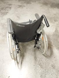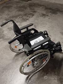 Pieghevole, per un minore ingombro da chiusa, leggera e maneggevole, confortevole, con braccioli regolabili in altezza ed estraibili, come anche le pedane, estraibili e girevoli.