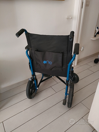 Maneggevole sedia a rotelle, dalle dimensioni compatte, comoda da trasportare in auto. Usata pochissime volte